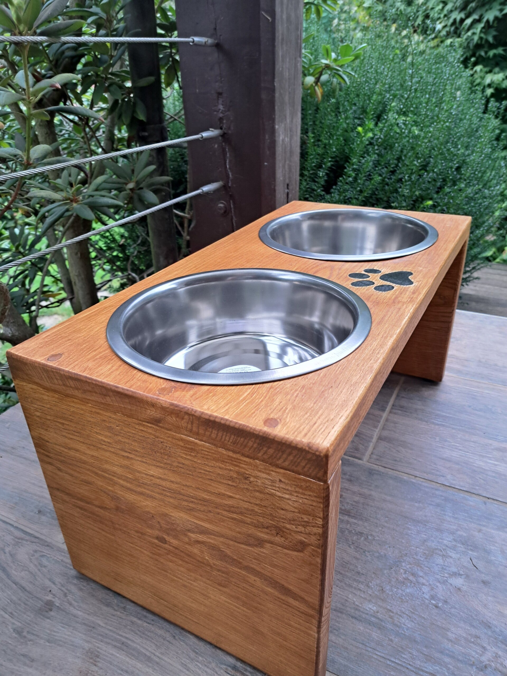 Stojalo za pasje ljubljenčke velike velikosti iz HRASTA / Š 25 cm - V 23 cm do 30 cm - D 54 cm